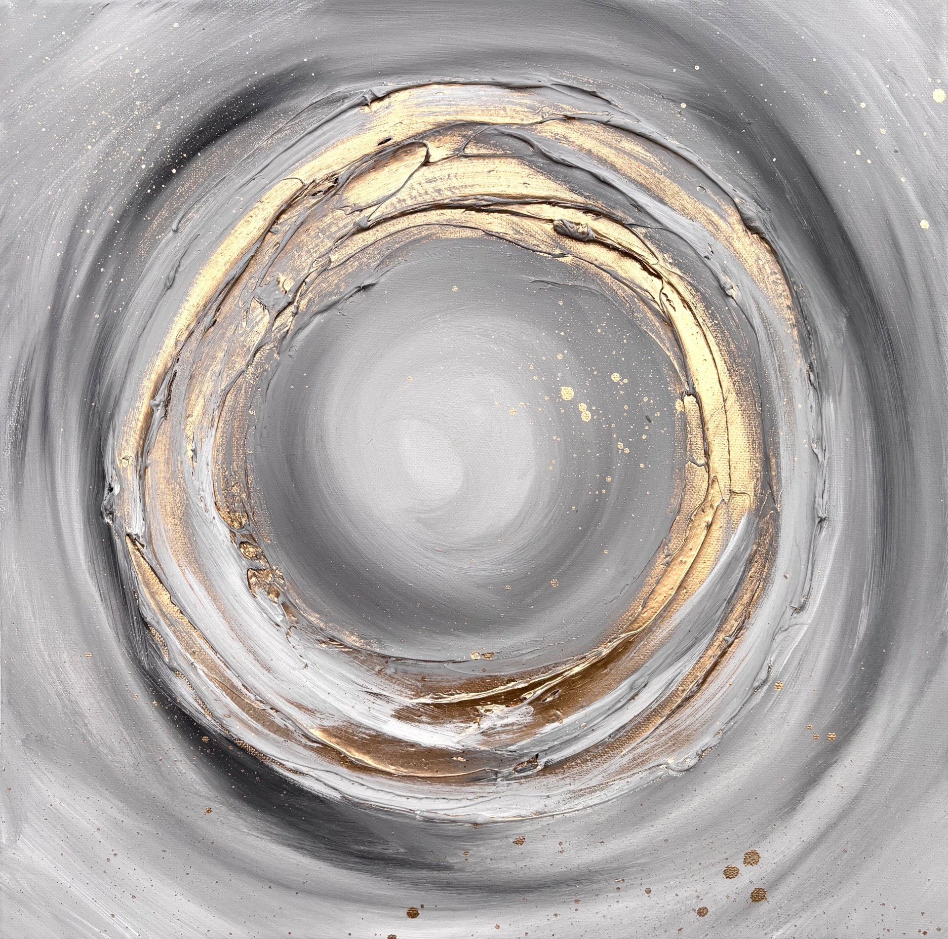 Zlatobílý kruh uprostřed představuje symbolický portál – otevřený prostor pro přijímání, plynutí a propojení se sebou samou.