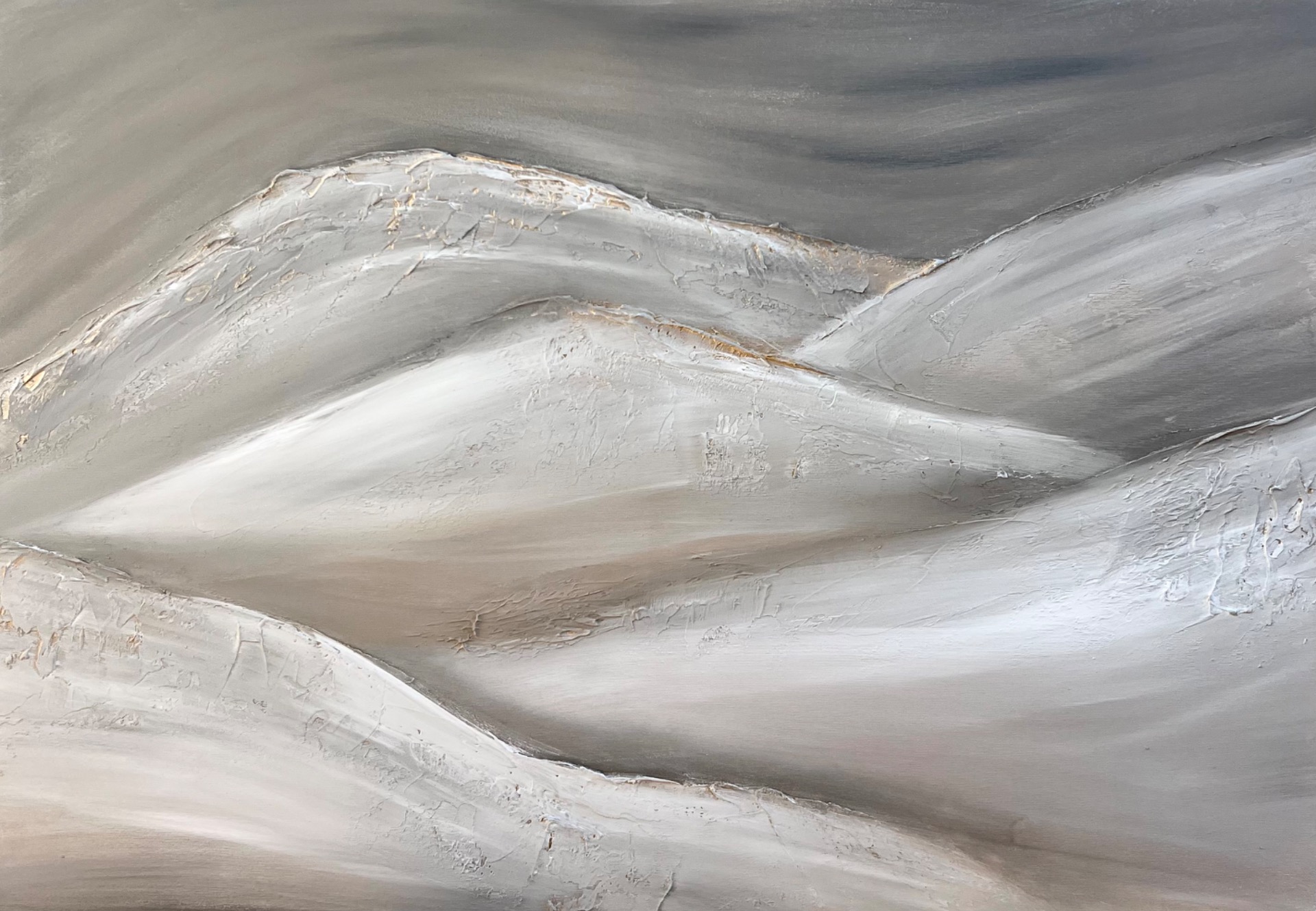 Bežové a bílé tóny vytvářejí pocit lehkosti a čistoty, zatímco zlaté odlesky na vrcholcích symbolizují okamžiky, kdy se srdce rozzáří – když milujeme a jsme milováni.