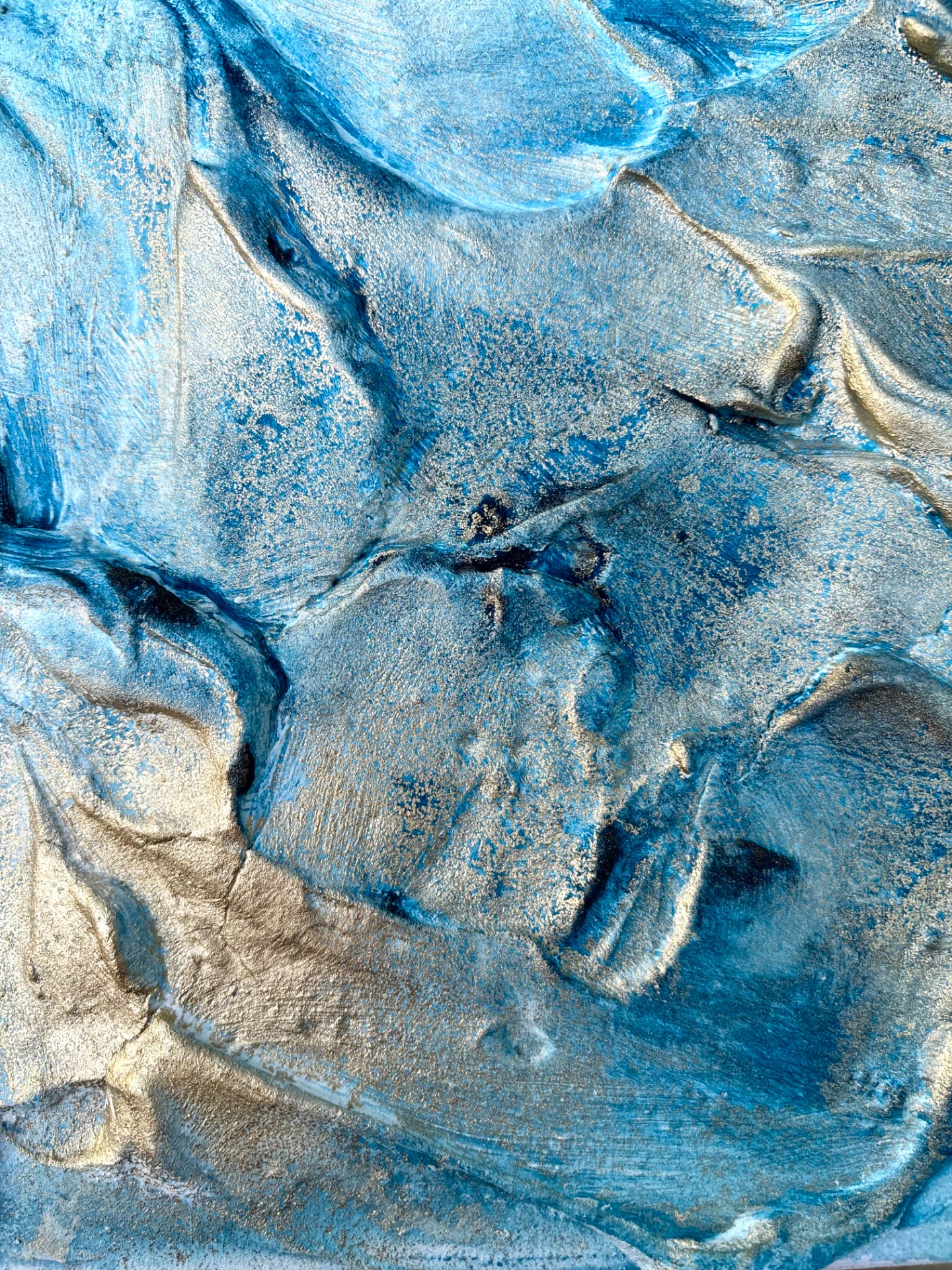 Zvolené odstíny modré přináší klid, důvěru i čerstvost. A zlaté odlesky Ti připomenou, že i pod hladinou se skrývá hojnost – někdy stačí jen změnit úhel pohledu.