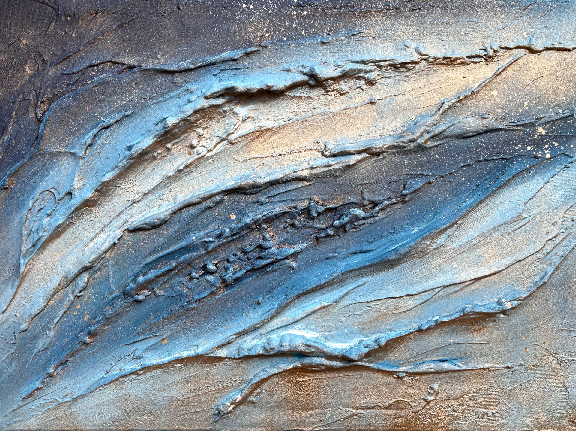 Struktura obrazu "Nechávám to plynout" připomíná proud řeky. Učí Tě pouštět to, co nemůžeš ovlivnit, a nacházet klid v přijetí přítomného okamžiku.