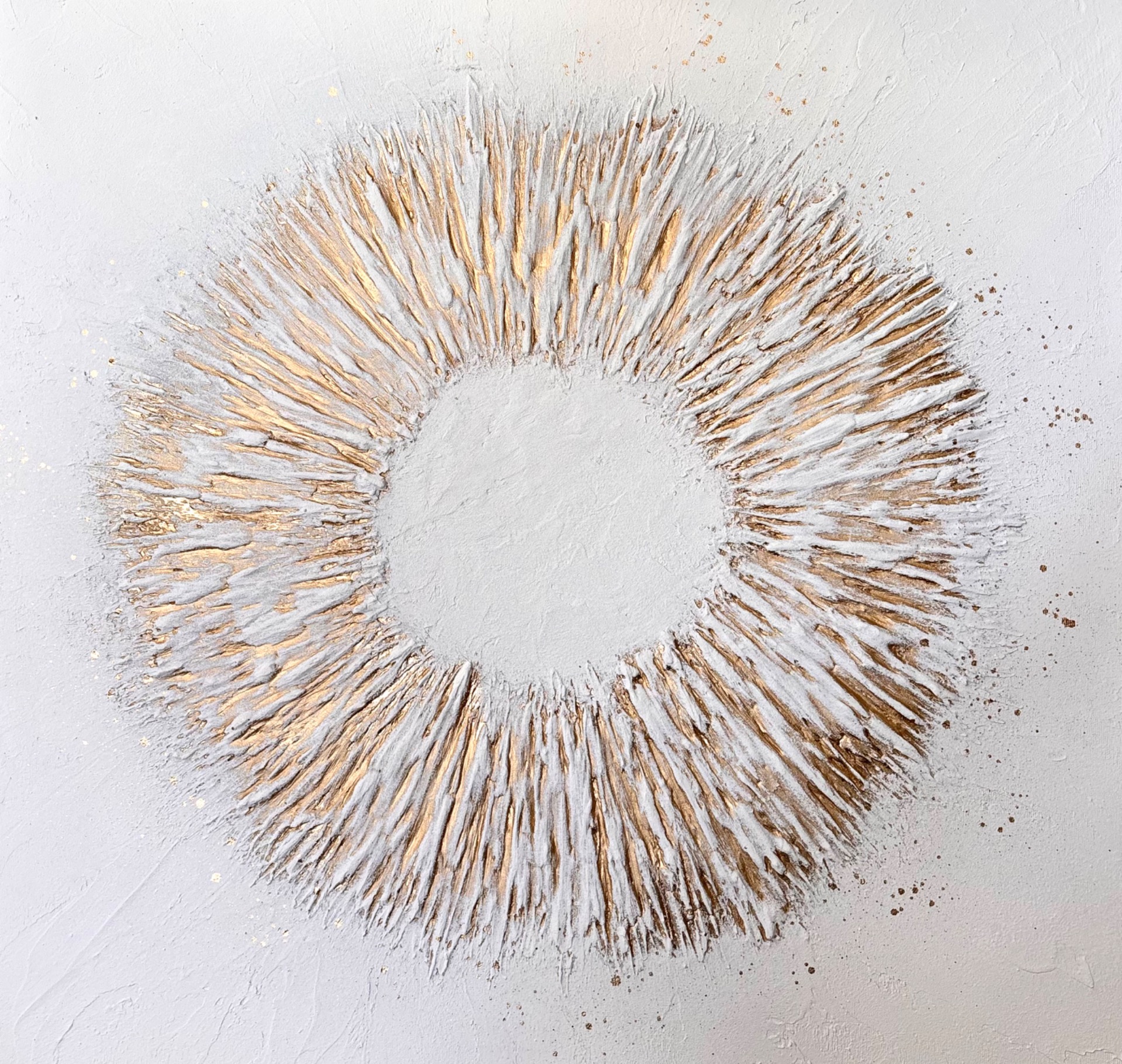 Tento obraz vznikl jako symbol toho vnitřního zdroje, který nikdy nekončí. Kruhový tvar představuje celek – jednotu, stabilitu, návrat k sobě. A zlaté paprsky, které z něj vyzařují, jsou energií růstu. Potenciál, který se rozpíná do všech směrů.