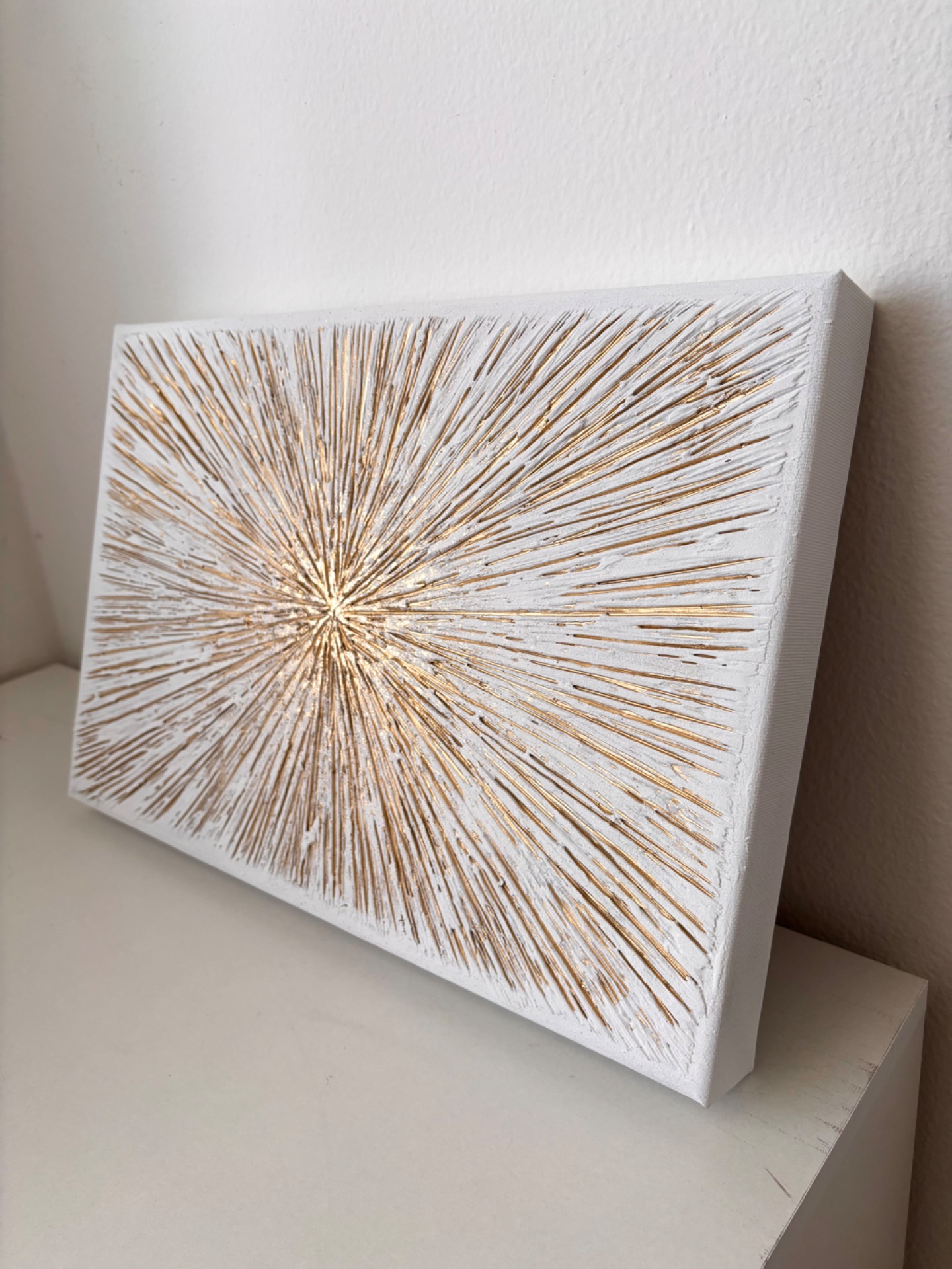 V tomto dárkovém balení najdete originální obraz, který je již připravený k zavěšení díky zlatému háčku na zadní straně. Součástí balení je také autorský certifikát pravosti s příběhem a záměrem obrazu, který mu dodává ještě hlubší význam.