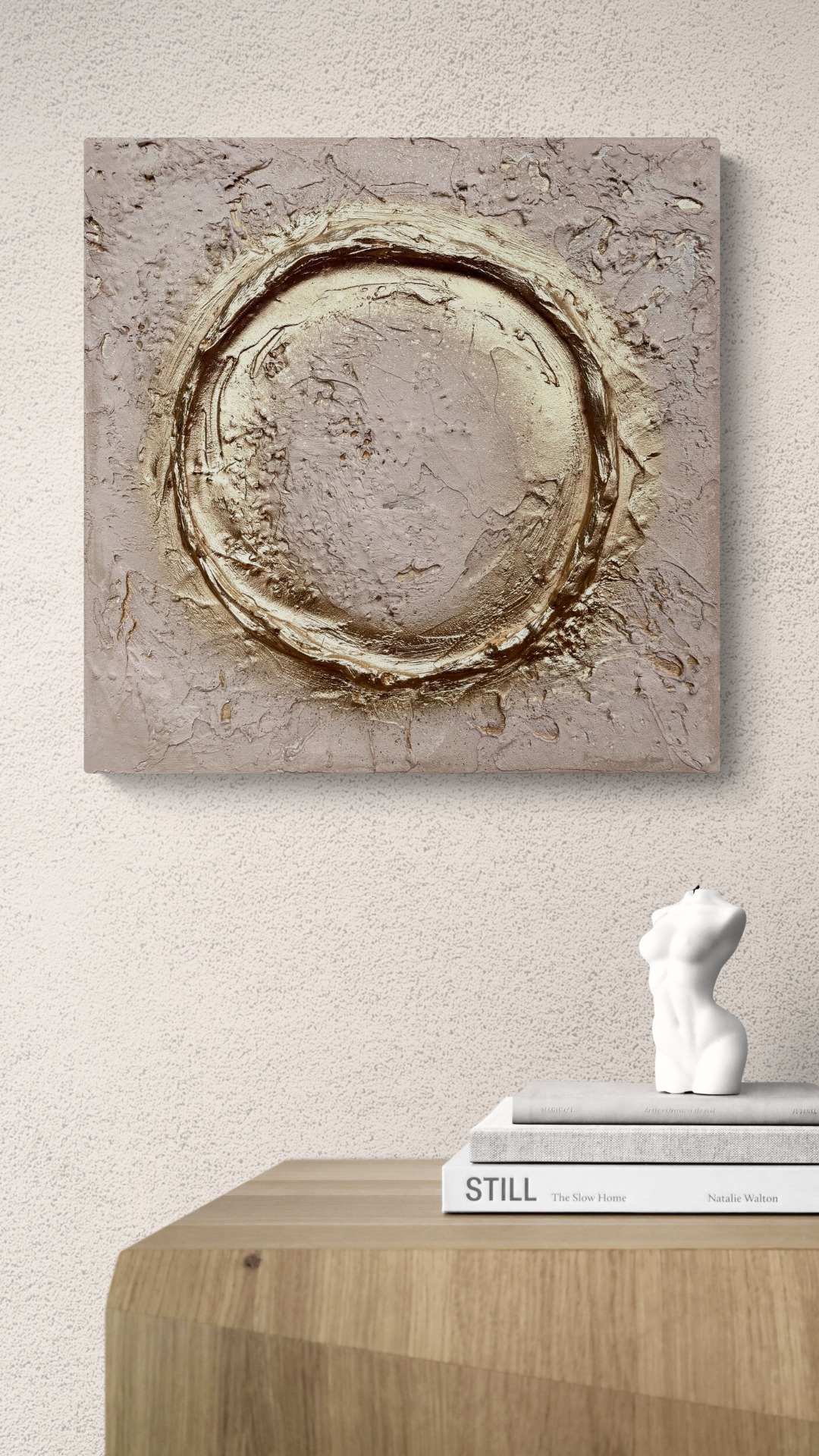 100x100 cm, akryl s 3D strukturou, plátkové zlato