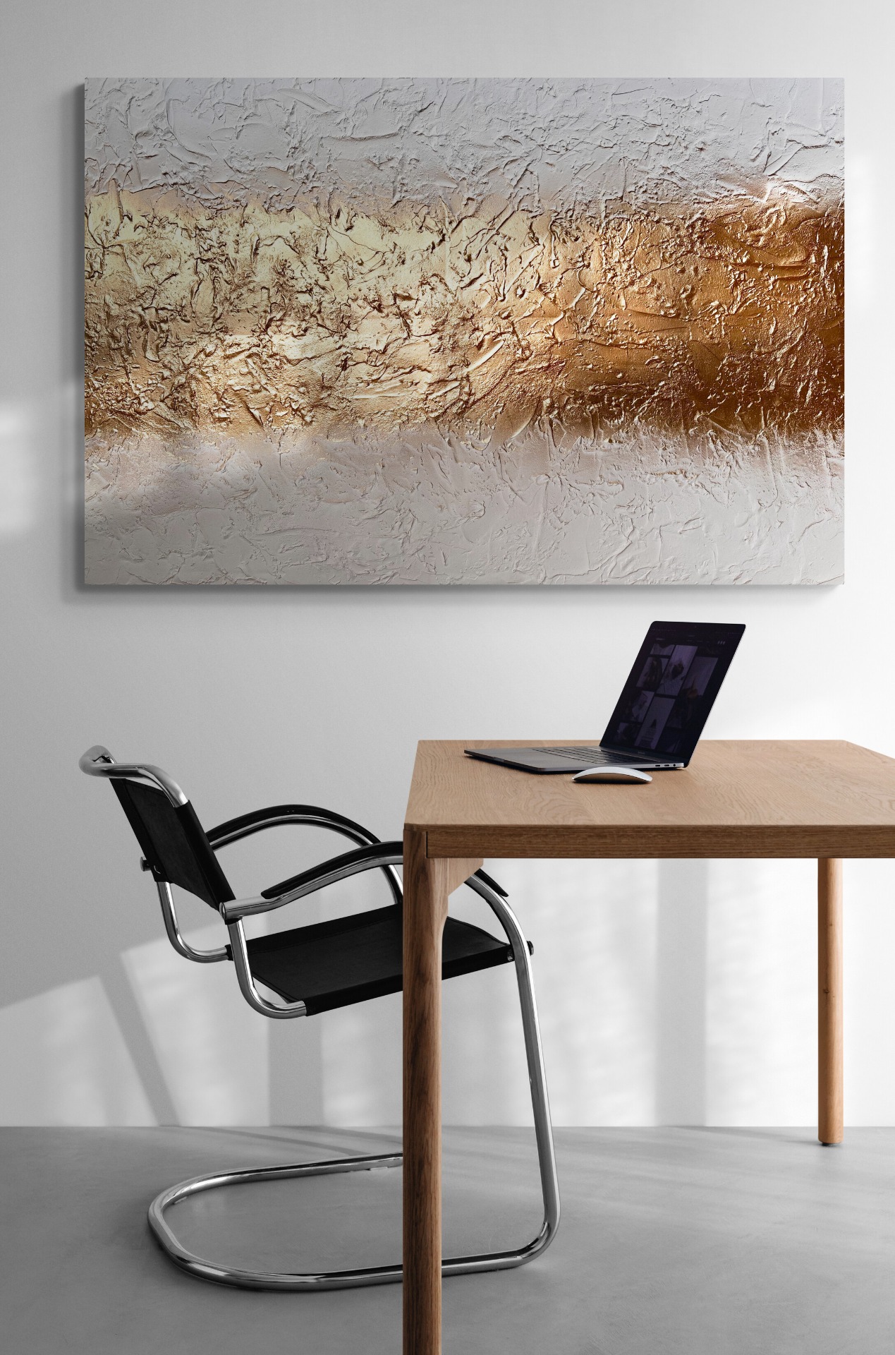 Nabízím také bezplatnou vizualizaci obrazu do vašeho interiéru – stačí mi zaslat fotografii například obývacího pokoje, kanceláře nebo ložnice a společně vybereme obraz, který bude ladit nejen vizuálně, ale i pocitově.