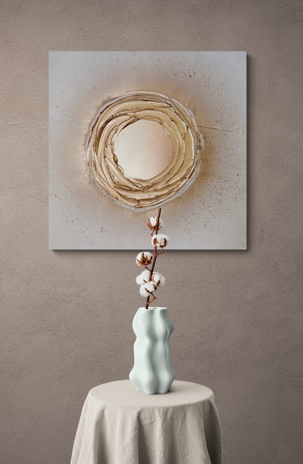 100x100 cm, akryl s 3D strukturou, plátkové zlato