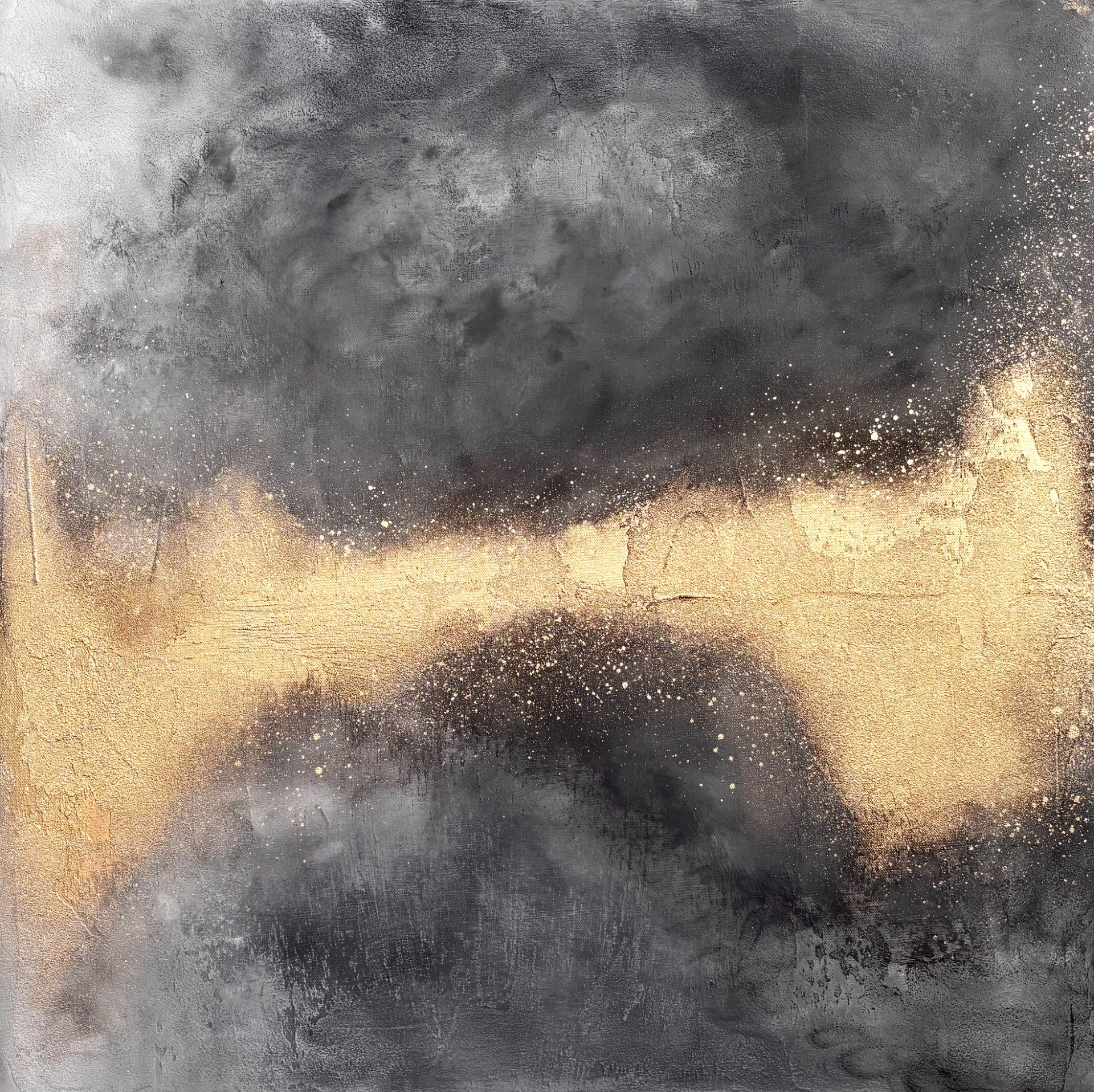 Zlaté světlo uprostřed proráží skrze temné mraky a připomíná, že každá bouře má svůj smysl. Přichází tehdy, když je čas na změnu. Není to náhoda, je to osud.