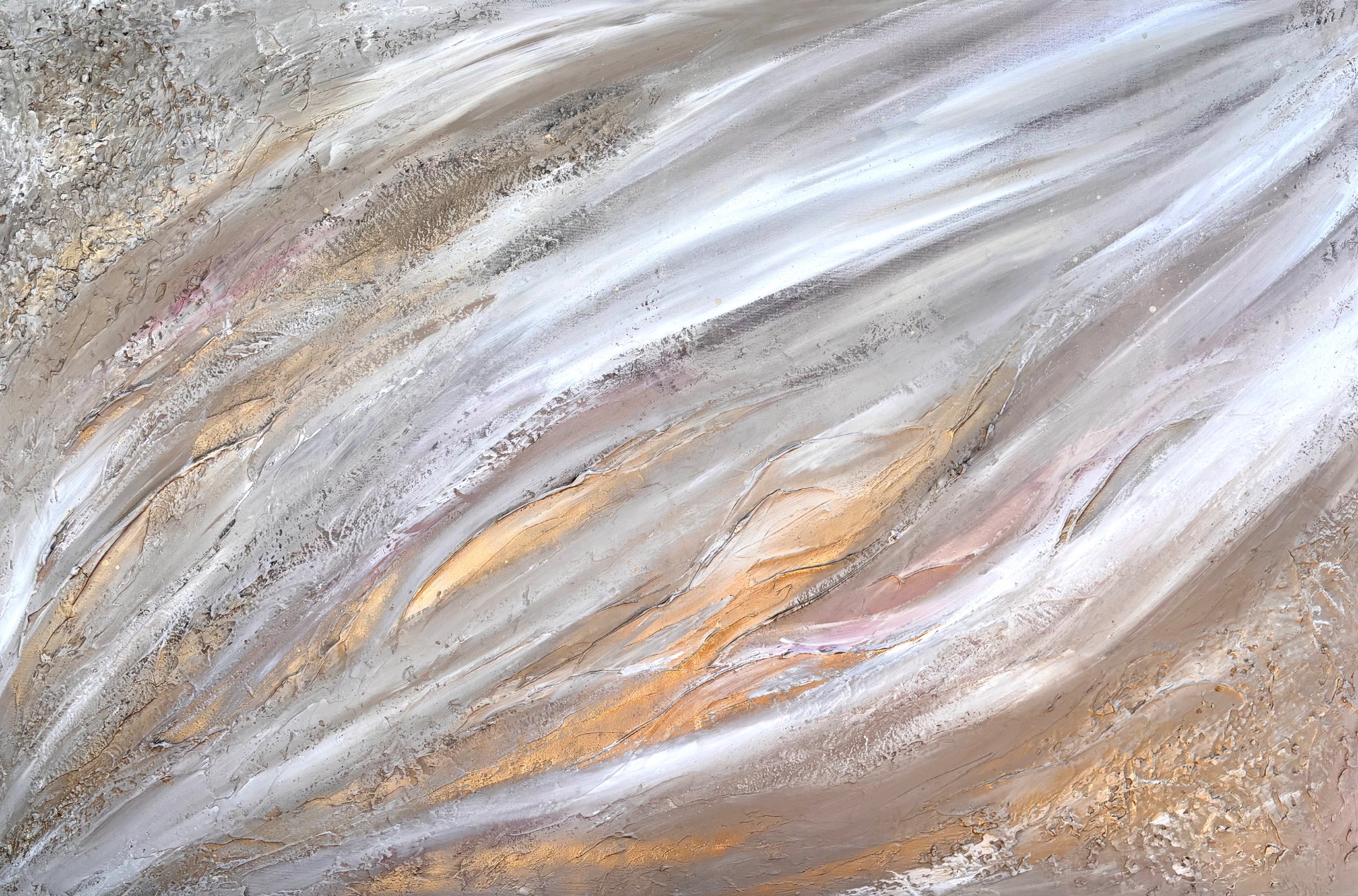 Jeho struktura a jemné tahy připomínají, že když pustíme to, co nás tíží – ať už jde o zlobu, křivdu nebo přísnost na sebe – získáváme nový prostor pro radost, volnost a vnitřní klid. Zlaté odlesky pak symbolizují naději, hojnost a nové začátky, které se objevují, když si dovolíme uvolnit kontrolu a více důvěřovat životu.