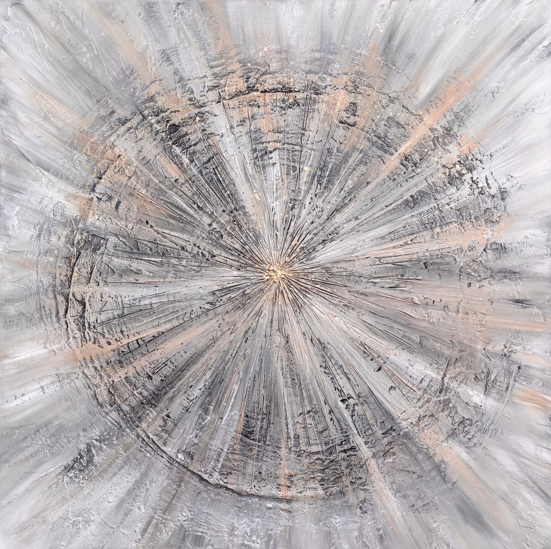 Obraz "Vize nového světa" je symbolem nových začátků. Momentu, kdy se staré rozpouští a vzniká prostor pro něco, co jsme si dříve ani nedokázali představit. Střed obrazu působí jako bod zrodu – místo, odkud se vše rozšiřuje do prostoru.