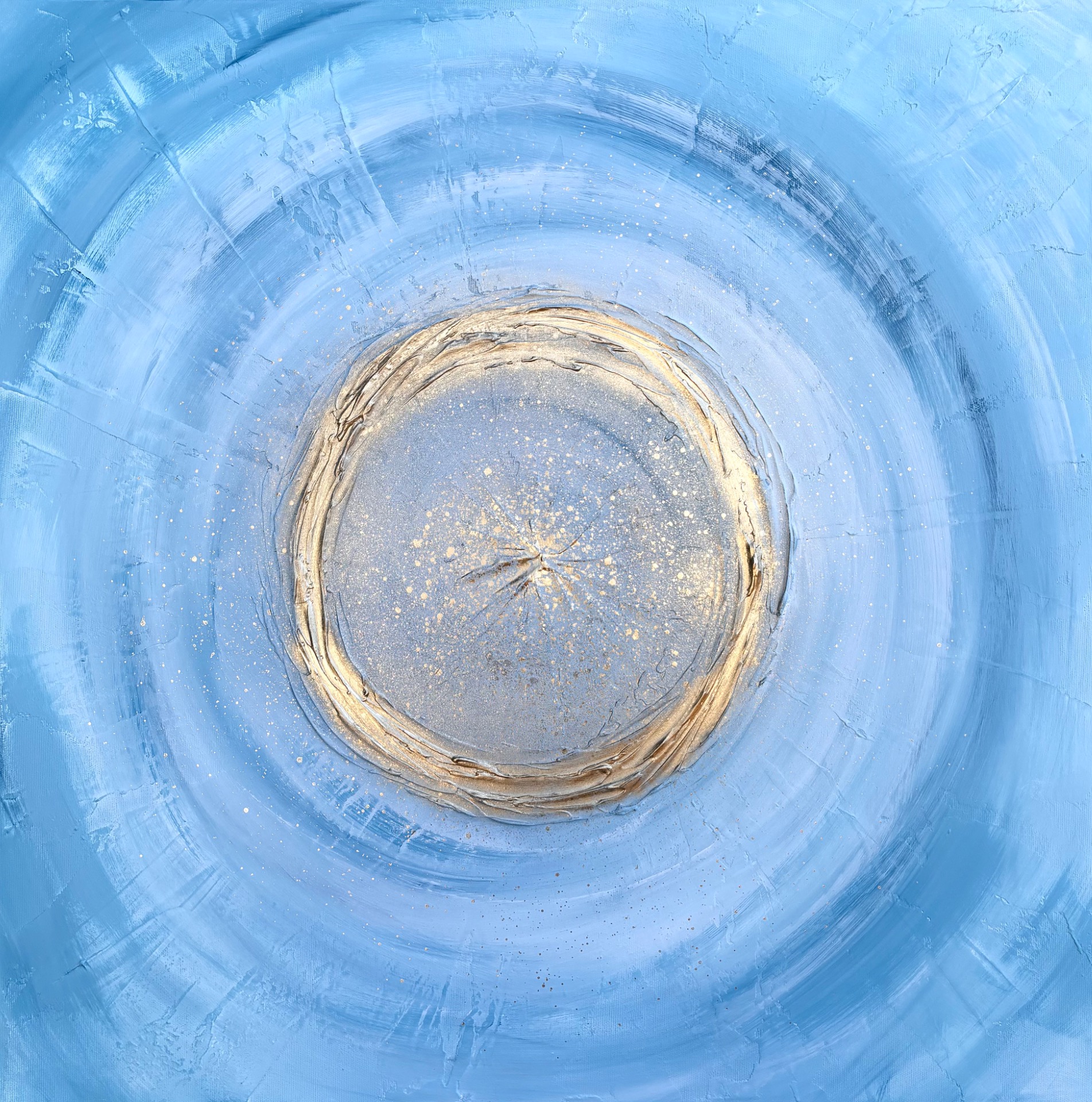 Modré odstíny v obraze přináší klid a důvěru. Jsou jako hladina vody – někdy jemně zvlněná, jindy naprosto tichá. Učí tě plynout, nechat věci přicházet i odcházet bez odporu. Protože právě v tom vzniká skutečná lehkost.