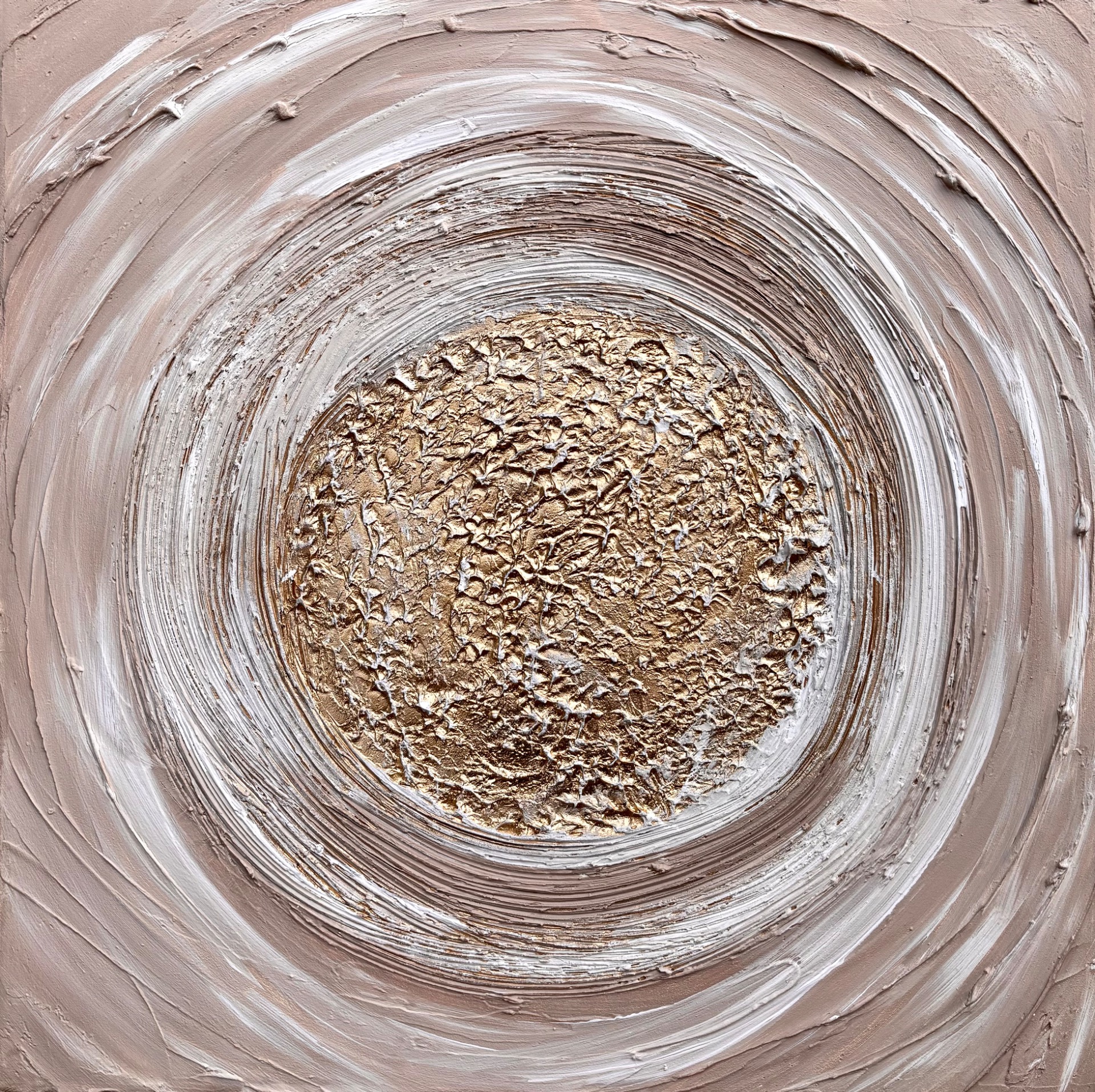 Kruhové tahy kolem středu vytvářejí pocit proudu energie, která se rozšiřuje všude tam, kam dovolíš. Jako když se usměješ na správnou chvíli… a celý den se najednou změní. Nebo když se na okamžik zastavíš, nadechneš, a uvědomíš si, že vlastně nic nechybí.